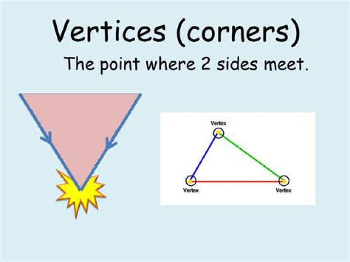 A vertex (plural: vertices) is a point where two or more line segments meet. It is a Corner.