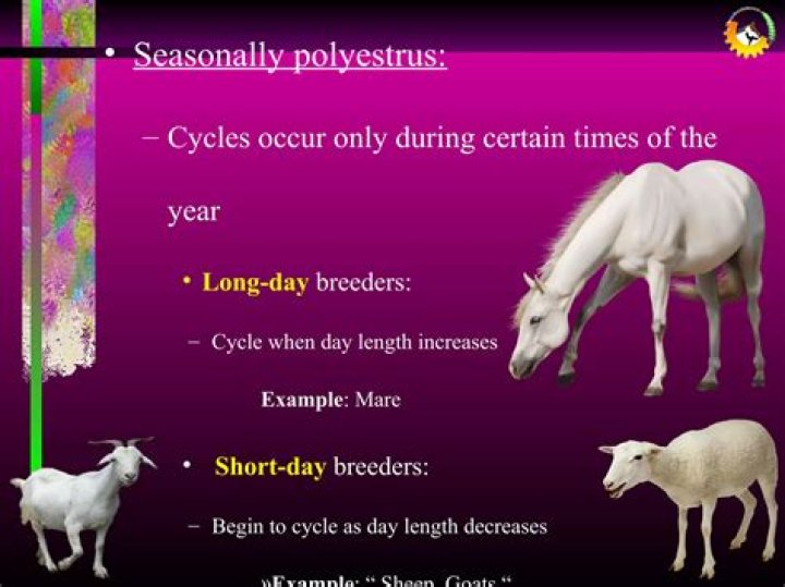 Goats are spontaneously ovulating, seasonally polyestrous animals with peak breeding activity occurring in the fall when day length is shortening . ... Factors that affect onset and length of the breeding season include geographic location (ie, latitude and climate), breed, herd social structure, and photoperiod.