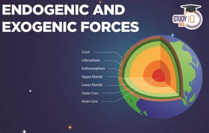 Processes caused by forces from within the Earth are endogenous processes. Exo is a prefix meaning "out", and endo is a prefix meaning "in".