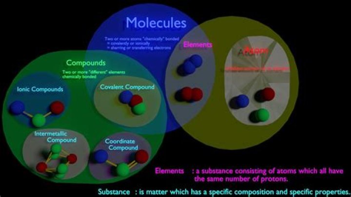 An element is a pure substance and is found on the periodic table. If you have more than one element chemically bonded, it is a compound. Hydrogen, oxygen, and iron are all elements. H2O is a compound because it is hydrogen and oxygen chemically bonded.