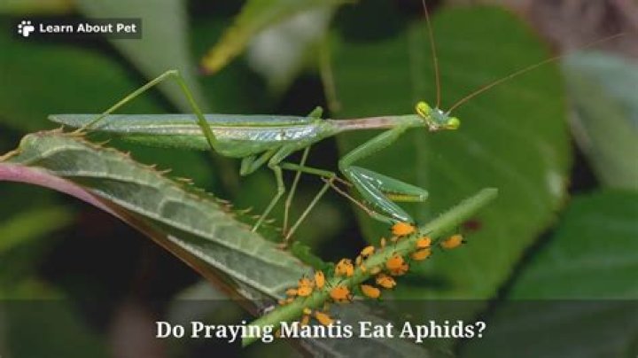 Mantis have enormous appetites, eating various aphids, leafhoppers, mosquitoes, caterpillars and other soft-bodied insects when young. Later they will eat larger insects, beetles, grasshoppers, crickets, and other pest insects. ... With plenty to eat they usually will not stray far.