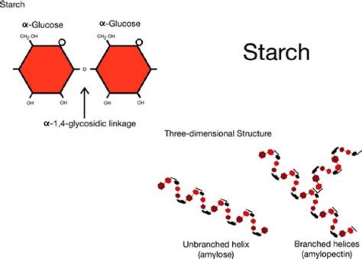 Starch is a polysaccharide comprising glucose monomers joined in α 1,4 linkages. The simplest form of starch is the linear polymer amylose; amylopectin is the branched form.