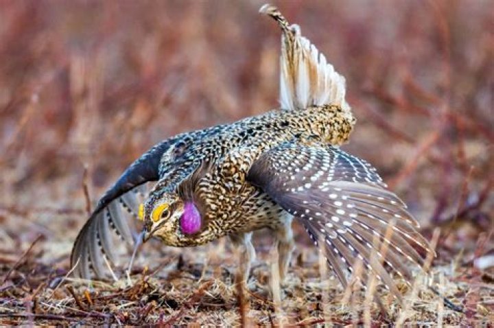 Prairie chickens have horizontal barring across the breast and belly. This is the most obvious difference between the two prairie grouse. Sharp-tailed grouse have distinctive “chevron” shaped markings on the underside. ... Sharp-tailed grouse lack the ornate “pinnae” feathers on the side of the neck.
