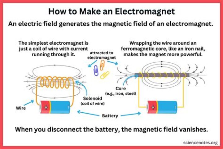 Putting a piece of iron or steel inside the coil makes the magnet strong enough to attract objects. The strength of an electromagnet can be increased by increasing the number of loops of wire around the iron core and by increasing the current or voltage.
