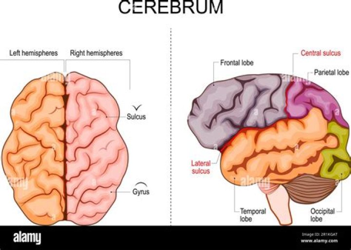 (seh-REE-brum) The largest part of the brain. It is divided into two hemispheres, or halves, called the cerebral hemispheres. Areas within the cerebrum control muscle functions and also control speech, thought, emotions, reading, writing, and learning.
