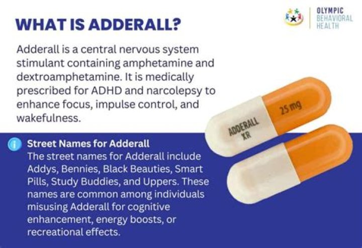Adderall is a prescription medication used to treat attention deficit hyperactivity disorder (ADHD) and narcolepsy. Adderall, a brand name, is a combination of amphetamine and dextroamphetamine, which are central nervous system stimulants.