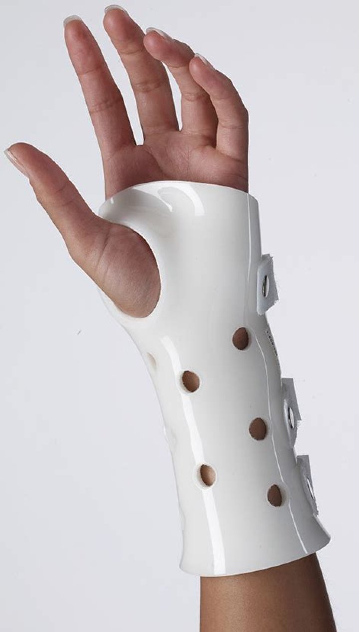 These orthotics encompass the forearm and the palm. They are primarily used to support weak muscles and/or immobilize or limit the motion of the wrist while allowing the fingers to move.
