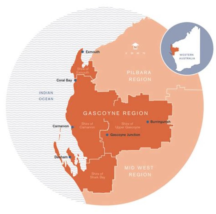 Batavia Coast (incorporating the area of Dongara, Geraldton, and Kalbarri) Gascoyne Coast (Carnarvon, Coral Bay, Denham, Exmouth and the Coral Coast)