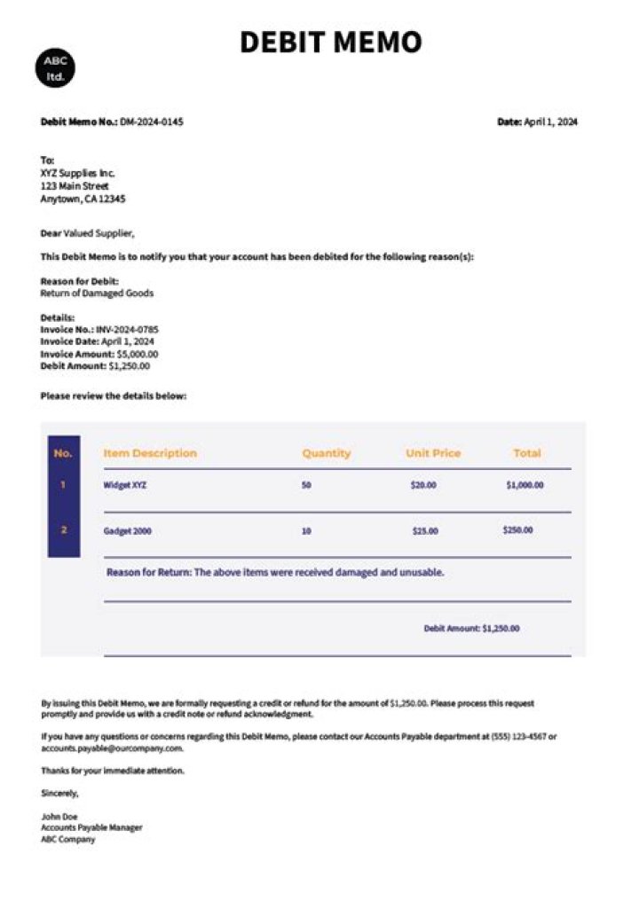A debit note, also known as a debit memo, is issued from a buyer to their seller to request a return of funds due to incorrect or damaged goods, purchase cancellation, or other specified circumstances. A debit note is similar to a credit note, except it's issued from the buyer's side.