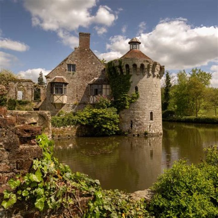 Scotney Castle is an English country house with formal gardens south-east of Lamberhurst in the valley of the River Bewl in Kent, England. It belongs to the National Trust. ... The central feature is the ruins of a medieval, moated manor house, Scotney Old Castle, which is on an island on a small lake.