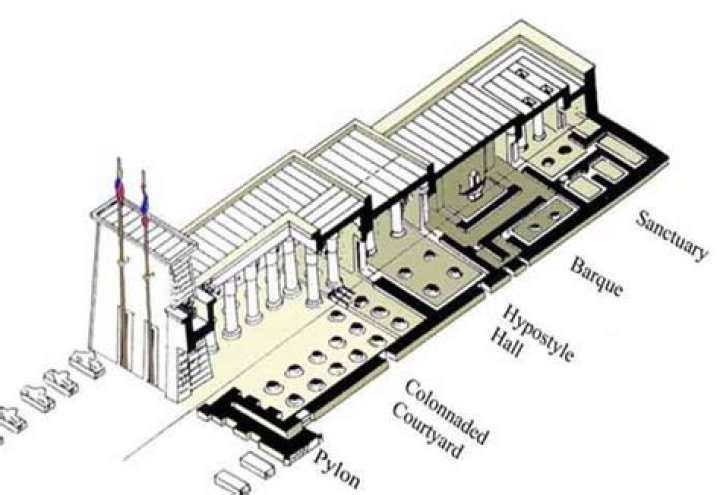Most Ancient Egyptian temples possessed a hypostyle hall. Hypostyle is an Ancient Greek term denoting a building having rows of columns supporting its roof. As befitting a "divine mansion," Egyptian temples were imposing structures often built of stone on a large scale.