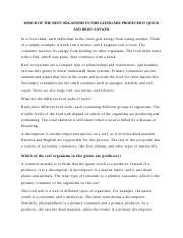 Answer: Generally, marine producers are: Cyanobacteria, Algaes (including both multicellular forms and single-celled forms), Seagrasses.