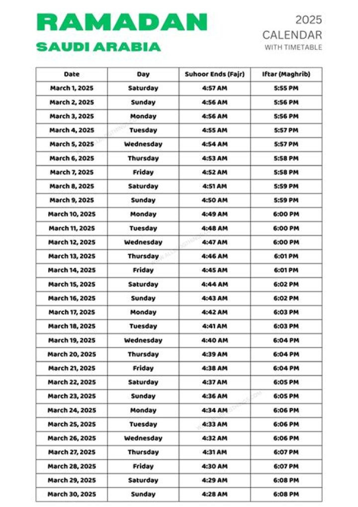 Ramadan Timetable 2020 Saudi Arabia.