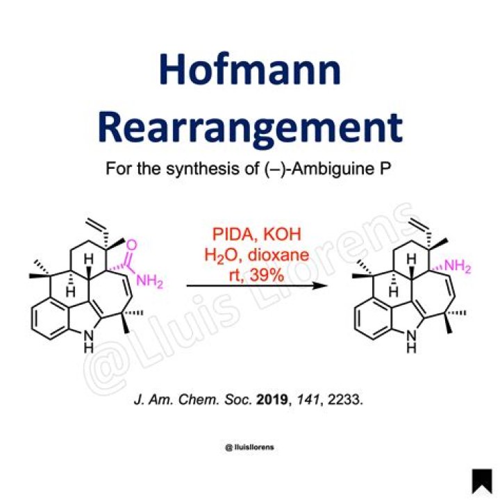 The Hofmann rearrangement is well known reaction used to synthesize primary amines from amides via a one carbon degradation. In this reaction, amides react with bromine and strong base which subsequently rearranges to give an isocyanate.
