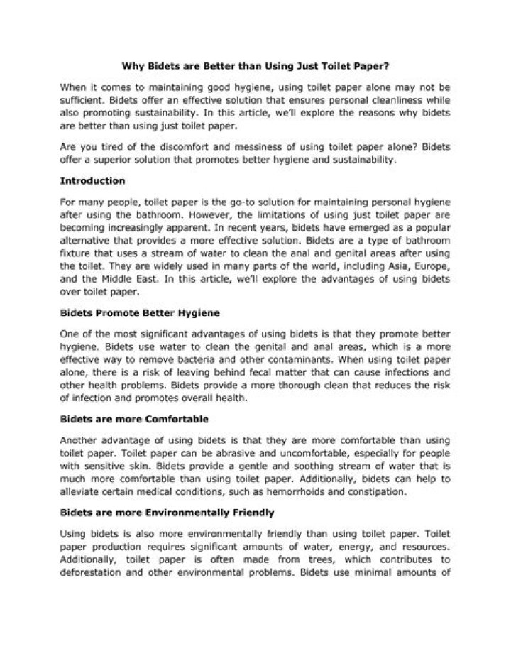 The cleanliness of using a bidet is unsurpASSed. While toilet paper excels at smearing do-do all over your bum hole, bidets actually wash away the poo leaving your bum feeling sparkling clean.